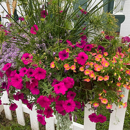 Locally grown seasonal flowers, vegetables, perennials and one of a kind baskets in the yard of a 19th century home on Main Street in Alma, Wisconsin. Seasonal Hours are from 9am to 5:30pm daily starting in early May to end of June. Locally grown, seasonal flowers & veggies for sale at a 19th century house yard in Alma, Wisconsin.